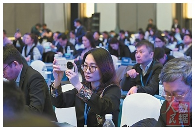 2025媒体融合发展论坛现场,参会人员在听会。 |