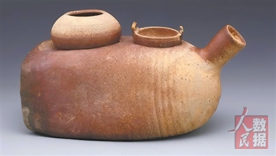 两宋时期饮茶兴盛。在中国茶叶博物馆里,还有一件宋代的邛崃窑酱釉茶鍑及风炉。它口径3.0厘米,高24.2厘米,长筒形炉身呈现砖红色,将风炉和茶鍑合为一体,不可拆分。腹部开炉门,炉门为壸门式。炉门两侧各刻画半身鸭子,形态自然,活泼可爱。茶鍑口沿,有两环形耳。