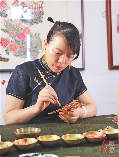 走进陕西西安的书院门,穿过小巷深处的楼梯,便来到汪氏皮影工作室。48岁的陕西省工艺美术大师汪海燕(见图,本报记者高炳摄)正伏在桌前,制作皮影作品《旦角凤冠》。她身后的墙上,还挂着《西厢记》《霸王别姬》《竹林七贤》等一批皮影作品,做工精巧细腻。“和皮影打了30多年交道,越来越品出其中的味道来。”汪海燕说。