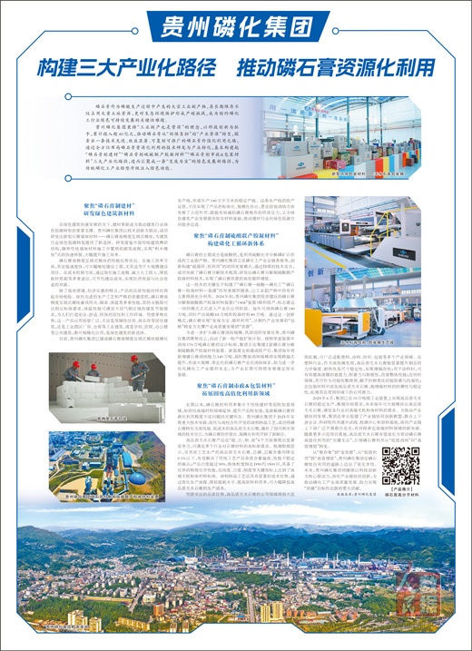 贵州磷化集团秉持“工业副产也是资源”的理念,以科技创新为抓手,累计投入超40亿元,推动磷石膏从“环保负担”向“产业资源”转变,探索出一条技术先进、效益显著、可复制可推广的磷石膏价值化利用之路,通过全方位布局磷石膏资源化利用的技术研发与产业转化,基本构建起“磷石膏制建材”“磷石膏制硫酸联产胶凝材料”“磷石膏制市政&包装材料”三大产业化路径,进而汇聚成一条“变废为宝”的绿色发展新路径,为传统磷化工产业转型升级注入绿色动能。