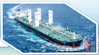 “相较其他油轮,‘新伊敦’轮多配备了两对我国企业自主研发的可伸缩翼状帆。风向契合时,发出的风能平均可节省燃油6%到8%。”海宏香港副总经理李伟平说。
