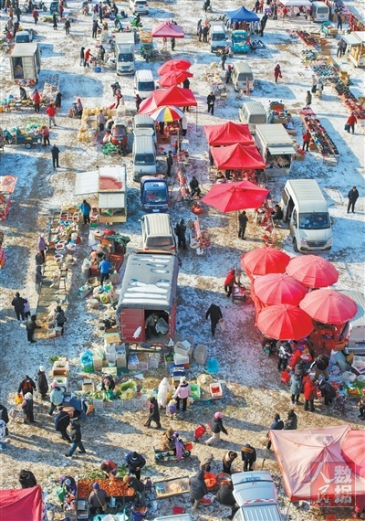 1月20日,山东青岛棘洪滩大集迎来腊月首个年货大集日。棘洪滩大集已有数百年历史,是当地具有代表性的传统集市。