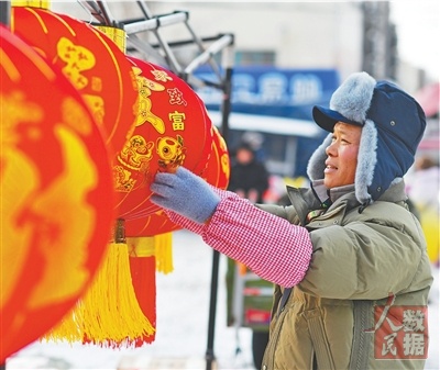 商户在摆放灯笼。