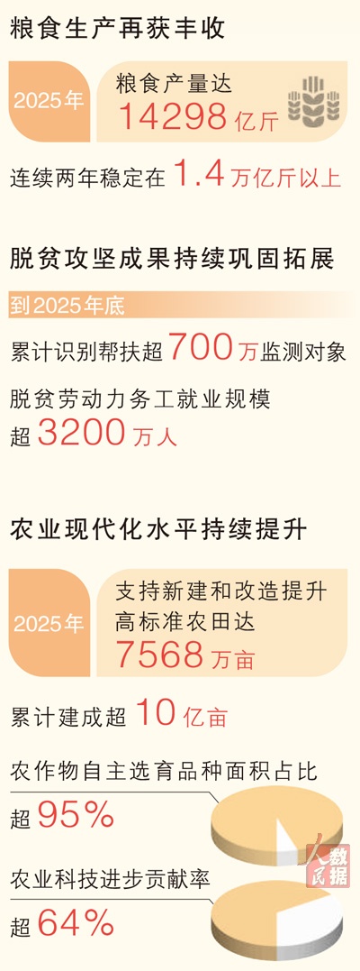 “三农”向好,全局主动。面向“十五五”,我国将加快农业农村现代化,扎实推进乡村全面振兴。在一季接一季的耕耘中,中国式现代化的底座持续夯实,为农民带来愈加厚实的获得感、幸福感、安全感,为“十五五”开好局、起好步注入坚定有力的确定性。