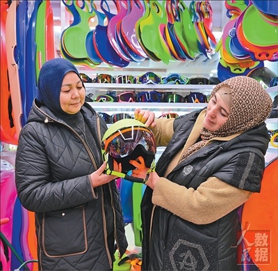 浙江义乌国际商贸城,吉尔吉斯斯坦外商在选购滑雪头盔。 时补法摄(影像中国)