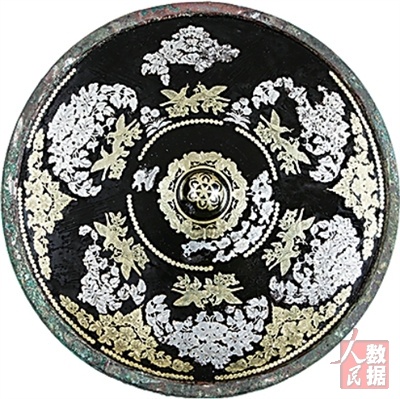 新疆吐鲁番市巴达木东墓群出土的金银平脱花鸟纹铜镜。 |