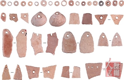 河北阳原县新庙庄旧石器时代遗址出土的穿孔装饰品。 |