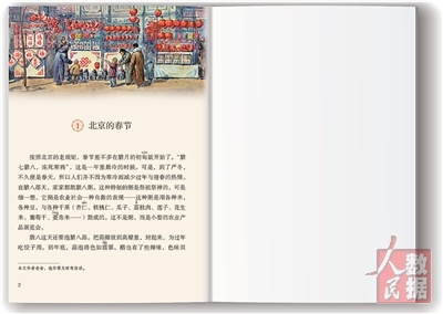统编语文教材(人教社出版)六年级下册《北京的春节》课文内页。 |