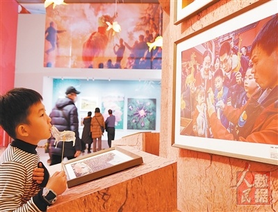 在中国非物质文化遗产馆举行的展览现场,小朋友被一幅摄影作品吸引。 |
