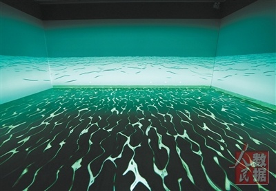 靳军数字沉浸作品《平直曲面的天水如一》局部。 |
