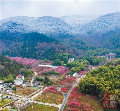 安徽芜湖市繁昌区峨山镇城东村,这里曾有一处废弃矿山。当地开展生态修复和经济林种植,在改善生态环境的同时,农文旅融合发展乡村旅游,带动村民致富,助力乡村全面振兴。图为修复后的山坡上红梅绽放。