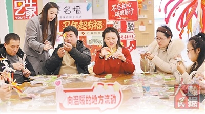 江苏省连云港市连云区组织流动党员开展春节主题系列活动,图为流动党员在体验制作扭扭棒烟花束。 |
