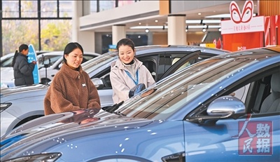 图为四川省眉山市仁寿县城区一家汽车销售店,市民正在选购汽车。 潘 帅摄(影像中国)
