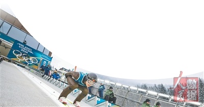 中国队运动员蔡雪桐在单板滑雪女子U型场地技巧资格赛中。 |