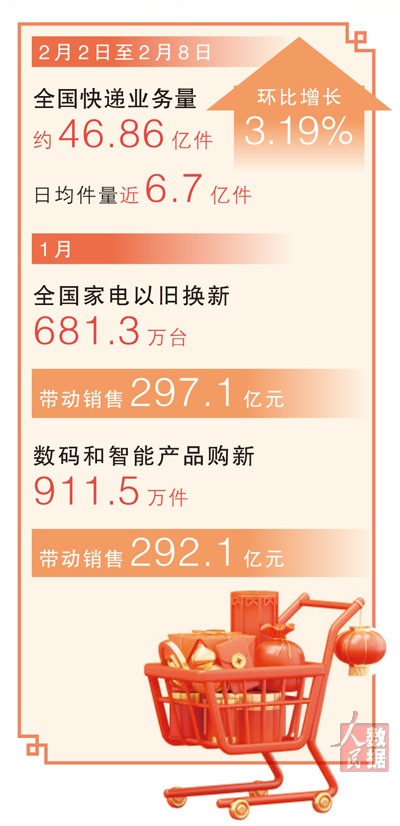 消费补贴“上新”,寄递服务“焕新”,通过顺畅的物流网络,更多电子产品加入年货潮,让“年经济”新意十足。