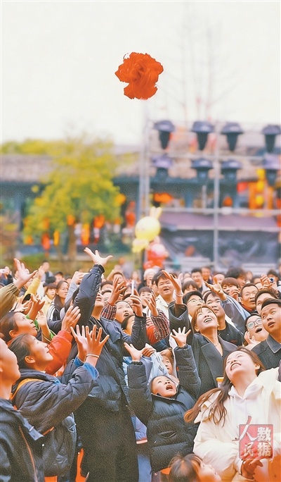 贵州安顺市安顺古城历史文化街区,游客们参与新春活动。 陈 婷摄(人民视觉)