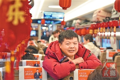 技术工人乘坐务工定制专列G4840次列车,从江西吉安前往江苏苏州学习深造。 王梦婧子摄(人民视觉)