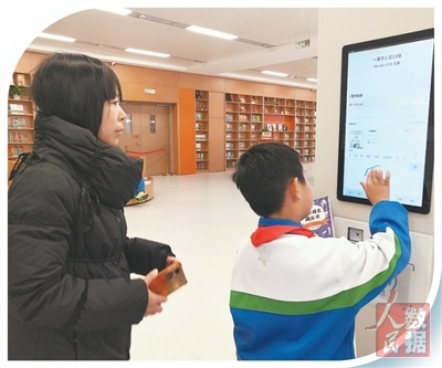 雄安图书馆内,小学生通过智能书柜检索图书。 |