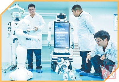 在盛视科技股份公司华中总部武汉研发中心,技术人员对人形机器人进行调试。 |