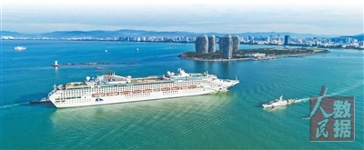邮轮驶入海南省三亚市凤凰岛国际邮轮港。