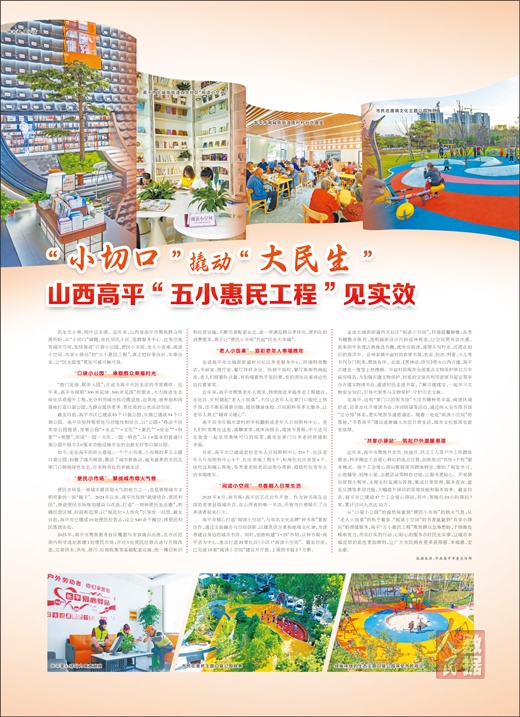 从“口袋小公园”的盎然绿意到“便民小市场”的烟火气息,从“老人小饭桌”的热乎餐食、“阅读小空间”的书香氤氲到“共享小驿站”的便捷服务,高平“五小惠民工程”聚焦群众急难愁盼,于细微处精准发力,用实打实的行动、心贴心的服务办好民生实事,让城市幸福宜居的底色更加鲜明,让广大市民拥有更多获得感、幸福感、安全感。