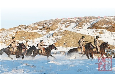 新疆军区某部乌拉斯台边防连官兵乘马巡边。 |