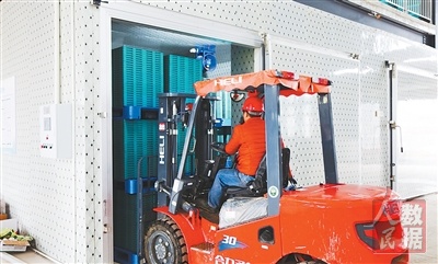 图为秧盘被送入暗化催芽室。 |