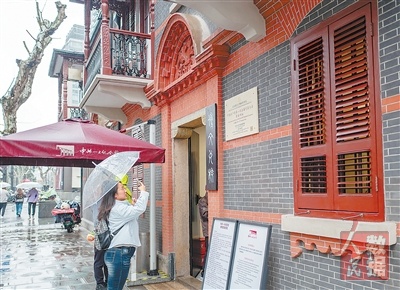 图为3月24日,参观者在中共一大代表宿舍旧址前拍照留念。 |