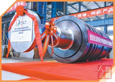 中国一重研制的国产首支自主化标准百万等级常规岛整锻低压转子锻件。 |