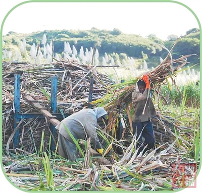 蔗农们在收割甘蔗。 |