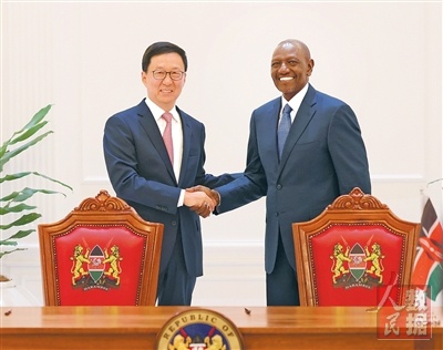本报内罗毕3月25日电 (记者黄炜鑫)当地时间2026年3月22日至25日,应肯尼亚副总统金迪基邀请,国家副主席韩正访问肯尼亚,在内罗毕会见肯尼亚总统鲁托,同副总统金迪基进行交流,出席肯尼亚享受零关税出口中国商品展示会暨中国—肯尼亚商务论坛并致辞。