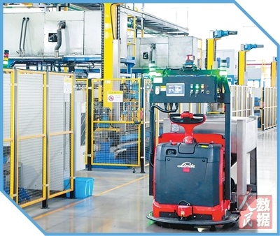 株硬集团粉末事业部的智能生产线上,自动导引车在进行无人化物料转运。 |