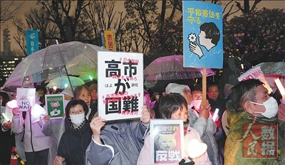 “我十分担忧高市政府最近一系列右倾化的政策动向,日本正被引向随时发动战争的轨道。”参加集会的20多岁东京市民见富夏树对记者表示,他强烈反对高市的政策主张,“政府企图将民众拖入不必要的战争,耗费大量国民税金。在当前国际背景下,日本宪法第九条在维护和平方面发挥着不可替代的作用,绝不容随意修改或被削弱。日本执意推进愈加激进政策,最终只能走向自我毁灭。”