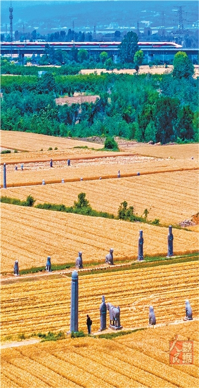 河南巩义,一列复兴号动车组列车在金色田野上飞驰。 |