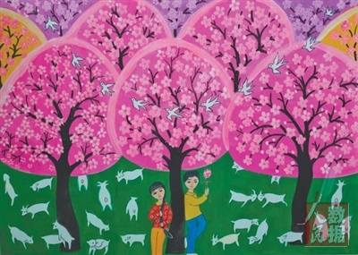 在安徽省文化和旅游厅对口帮扶下,六安市杨公村村民积极开展农民画创作。图为该村农民画作品。 |