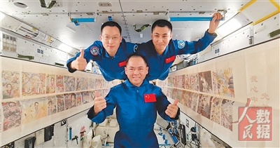 神舟二十一号航天员乘组在轨展示第五届“天宫画展”作品(视频截图)。 |