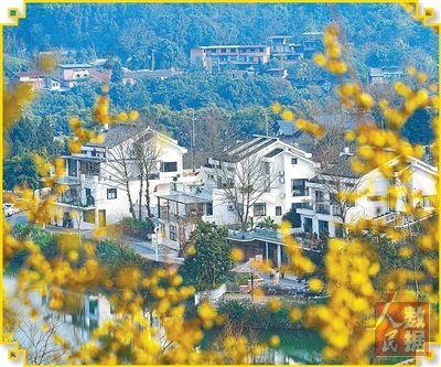 重庆市北碚区静观镇,丛丛蜡梅掩映乡村。 |