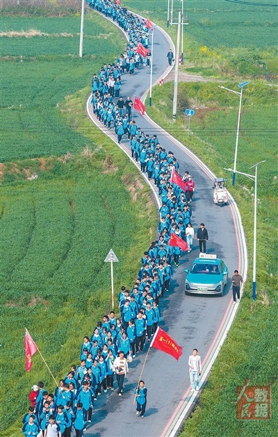 4月1日,安徽省芜湖市繁昌区恒杰双语学校400余名师生徒步12公里赴烈士陵园,以“行走的思政课”缅怀革命先烈。