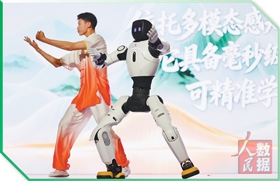 “2026数智赋能正能量生产传播大会”上,具身机器人与演员共同表演。 |