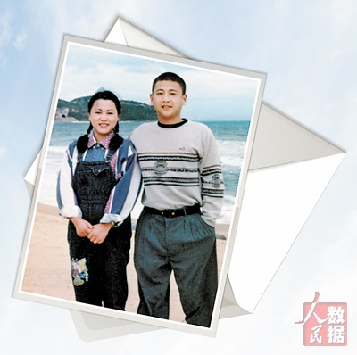 王伟和阮国琴结婚后在海南海边留影。 |