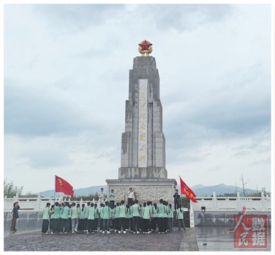 学生在于都烈士纪念园的革命烈士纪念碑前开展纪念活动。 |