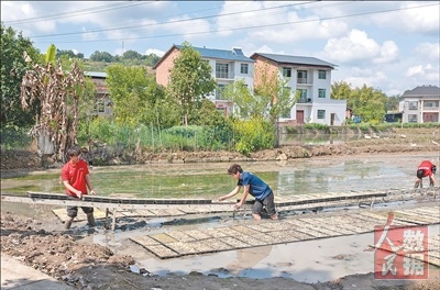 “人数相同的情况下,利用‘天车’一天能摆8000盘,折合4亩地,快4倍。”周腾鹏说,“重庆丘陵广布,机械传送带还能突破地形限制,更方便。”待幼苗长壮、裹成卷,再用传送带送回路边,运去大田插秧。