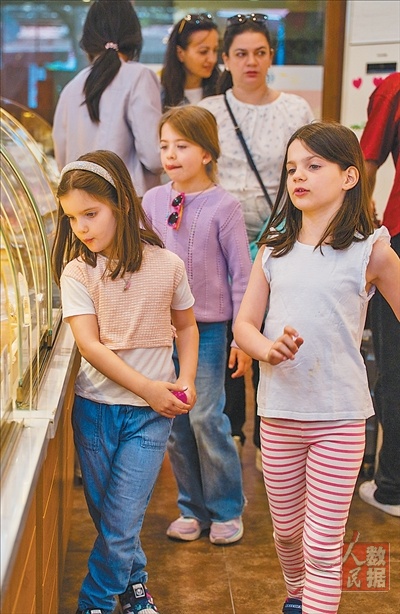 4月2日,外国游客在陕西西安市莲湖区回民街购物游玩。 |