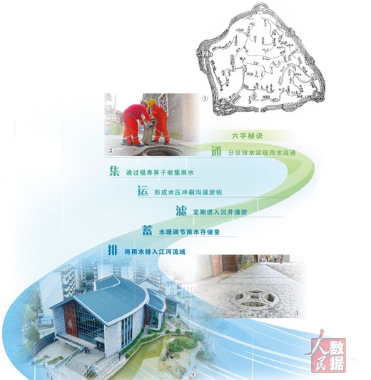 “城市中央公园的水体通过与雨水管网相连,就像福寿沟与各池塘相连接一样,不仅让水体流动起来,而且增强了城市蓄洪排涝的功能。另外,通过在水中种植菖蒲、荷花等水生植物来提高公园水体水质,增强城市蓄洪排涝的功能。”曾鑫说。