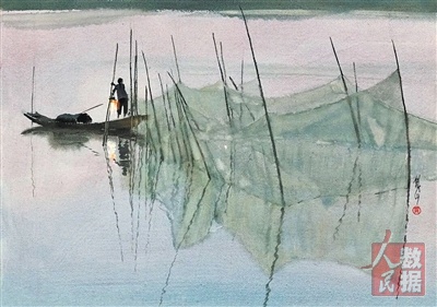 水彩《洞庭渔光曲》,作者黄铁山,中国美术馆藏。