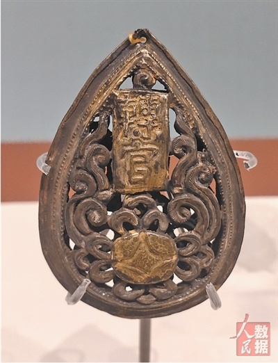 福建福州北郊茶园山宋墓出土鎏金银“转官”镂空花卉纹帔坠。 |