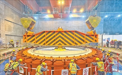 4月11日,金沙江干流拉哇水电站首台机组转子顺利完成吊装,标志着机组进入总装冲刺阶段。