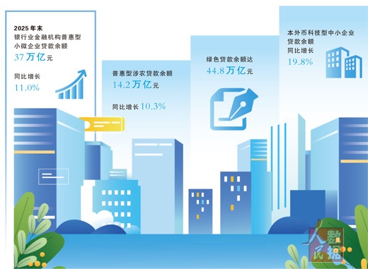 截至2025年末,工行制造业贷款余额突破5.2万亿元、同比增长近20%。建行投向战略性新兴产业贷款同比增长23.46%,投向京津冀、长三角、粤港澳大湾区等重点区域的贷款保持良好增长态势。农行县域贷款占境内贷款比重超过40%,年增量连续4年超过万亿元。交行养老产业贷款增幅接近50%。邮储银行养老金金融规模超3.5万亿元。