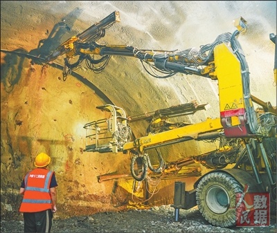新渝万高铁长岭岗隧道应用三臂凿岩台车等机械化设备进行施工。 |