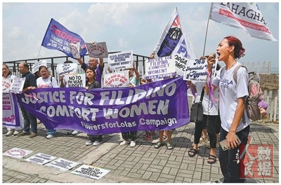 韩国民众在首都首尔一处象征日军“慰安妇”受害者的“和平少女”雕像周围举行抗议活动。 |